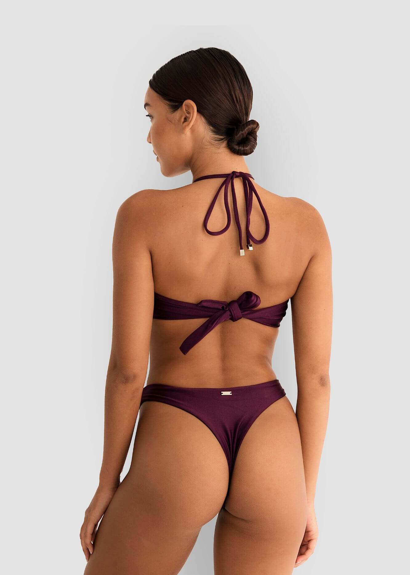 Deia is a minimalistic bandeau bikini top with an elegant gold ring at the front and removeable halter neck strap. This bandeau bikini top has double lining for support and comfort, and a tie back for adjustability.